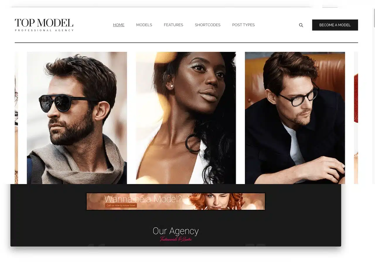 In the fast-paced world of fashion and modeling, having a sleek and professional online presence is crucial. Whether you're managing a top-tier model agency, representing talent, or promoting your brand, a well-designed website can set you apart. WordPress remains the go-to platform for building stunning, functional websites, and in 2025, premium themes have taken a giant leap forward in both style and performance. In this article, we’ve curated the 10 best model agency premium WordPress themes that combine cutting-edge design, powerful customization options, and seamless user experiences. These themes are built to impress — featuring modern layouts, high-quality image galleries, portfolio options, and responsive design for mobile compatibility. Whether you're launching a new agency site or upgrading an existing one, these themes offer the perfect balance of beauty and functionality to showcase your talent and attract new clients. Get ready to elevate your agency's online image with these top picks.