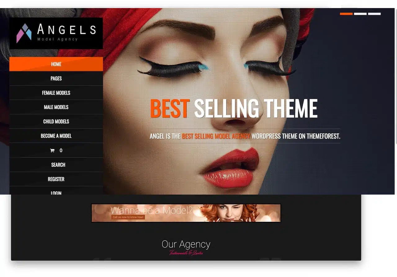 6. Angel – Fashion Model Agency WordPress CMS Theme